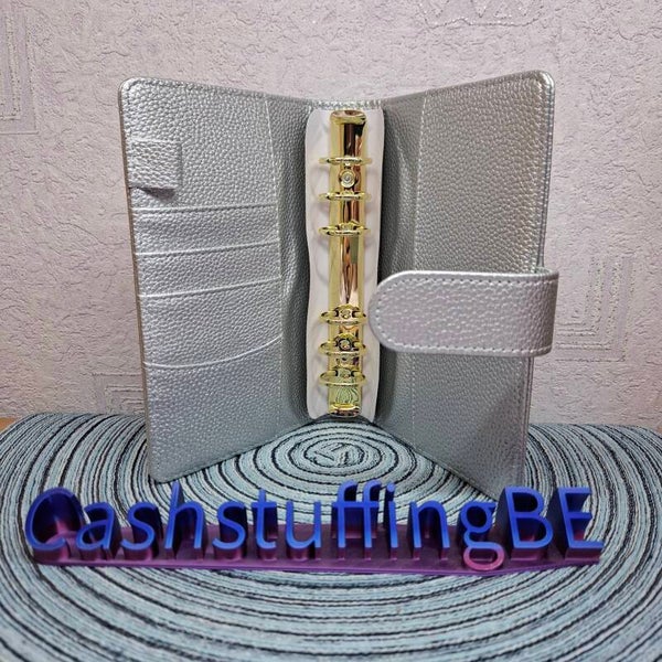 Deze prachtige shiny pebbles binder heeft grote gouden ringen zodat er meer cash enveloppen in kunnen.