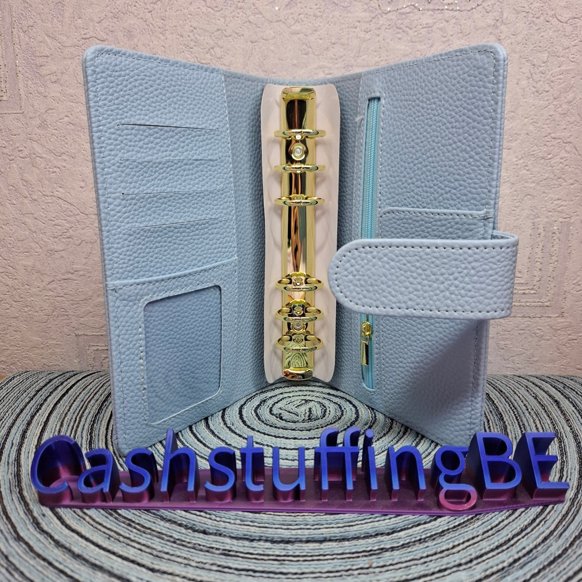 Deze prachtige shiny pebbles binder heeft grote gouden ringen zodat er meer cash enveloppen in kunnen.